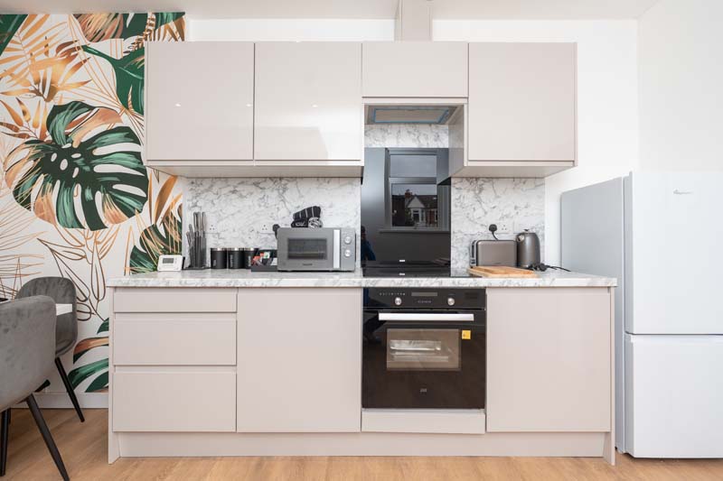 The layout maximizes natural light and comfort, with a spacious living area, brand new kitchen and bathrooms, and stylish fixtures. Conveniently located with easy access to local amenities, transport links, and parks, this move-in-ready apartment combines functionality with comfort for an exceptional living experience.